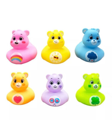 Set Of 6 Care Bears Duck Bath Toy 2-Inch Rubber Figures (Without Squeaks Sound)