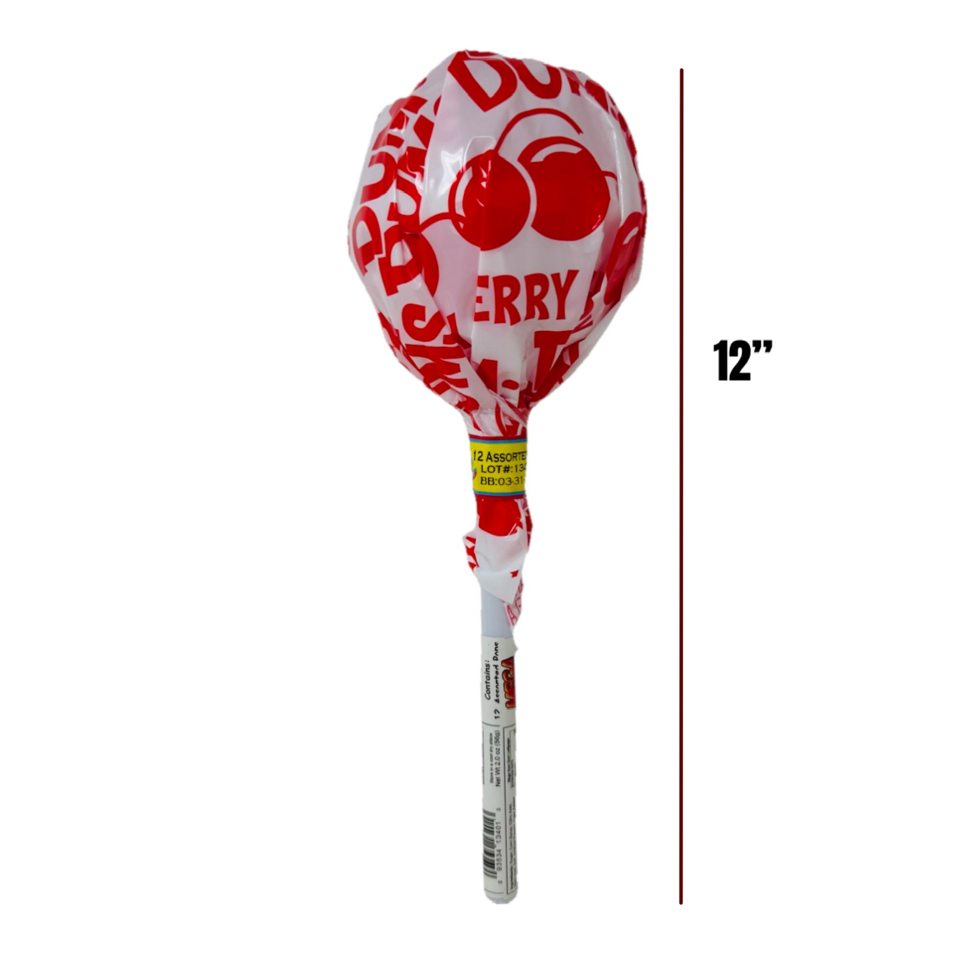 Jumbo plastic lollipop containers include 12 Dum Dums suckers in an assortment flavors. Each big pop is enclosed with a massive Dum Dums Pop wrapper. Perfect for gifting or decorating a party or event, these treats are sure to impress.