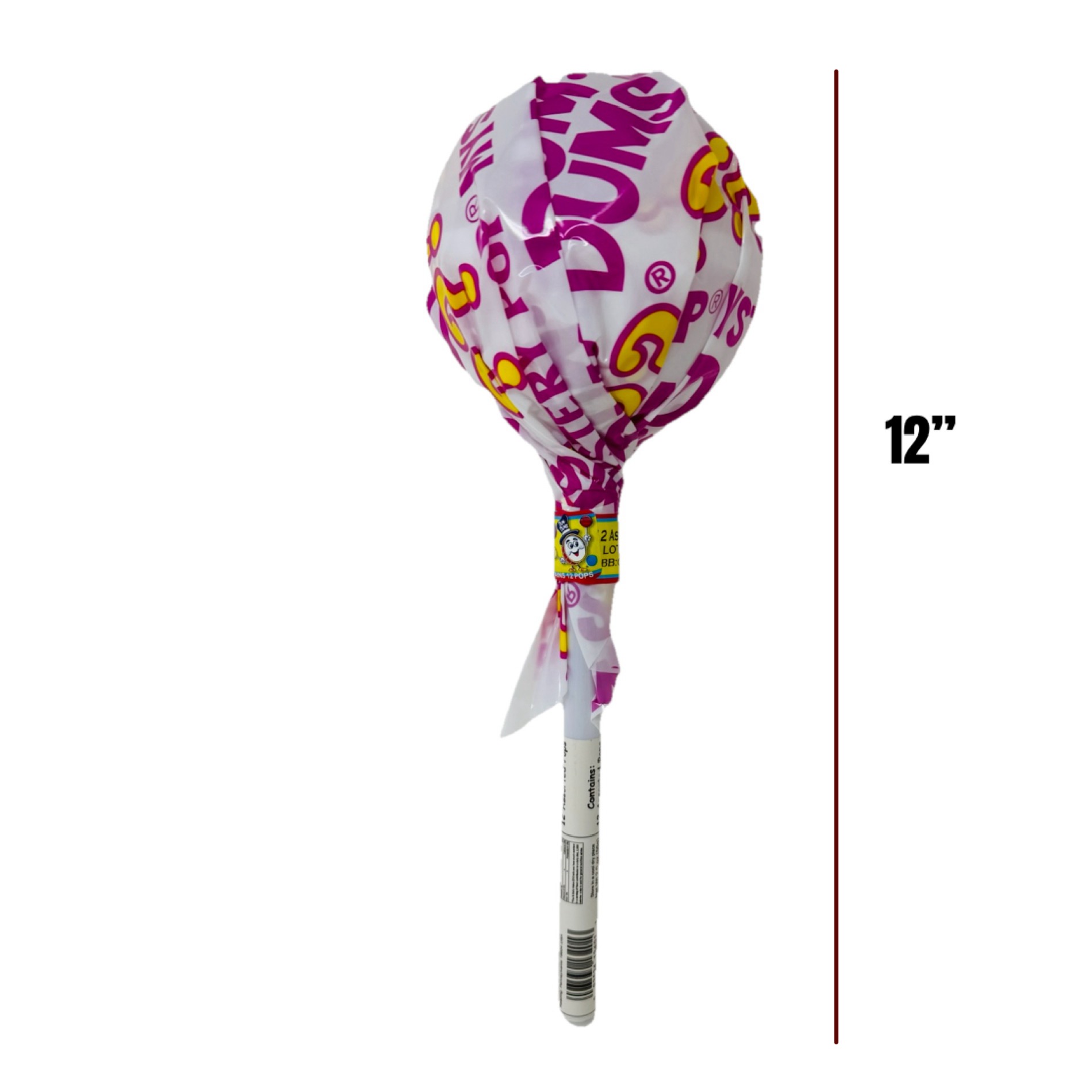 Jumbo plastic lollipop containers include 12 Dum Dums suckers in an assortment flavors. Each big pop is enclosed with a massive Dum Dums Pop wrapper. Perfect for gifting or decorating a party or event, these treats are sure to impress.